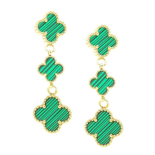 - Elevate your style with these triple clover dangle fashion earrings crafted from durable stainless steel