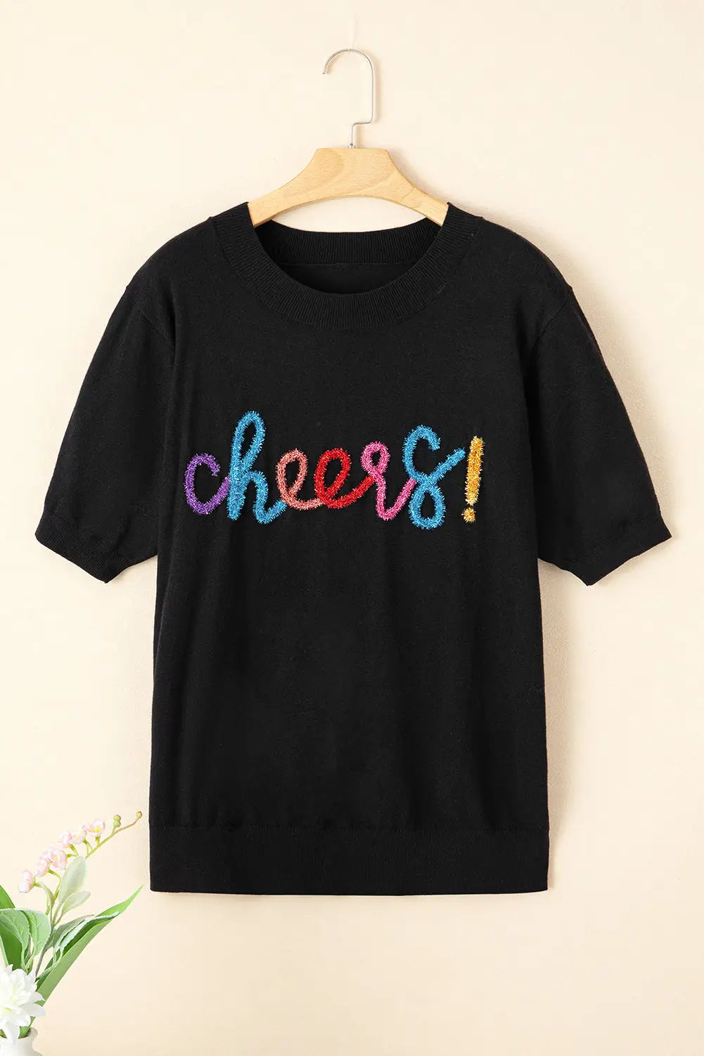 Black Plus Size Cheers Glitter Tinsel Short Sleeve Sweater-5 Black Plus Size Cheers Glitter Tinsel Short Sleeve Sweater-5