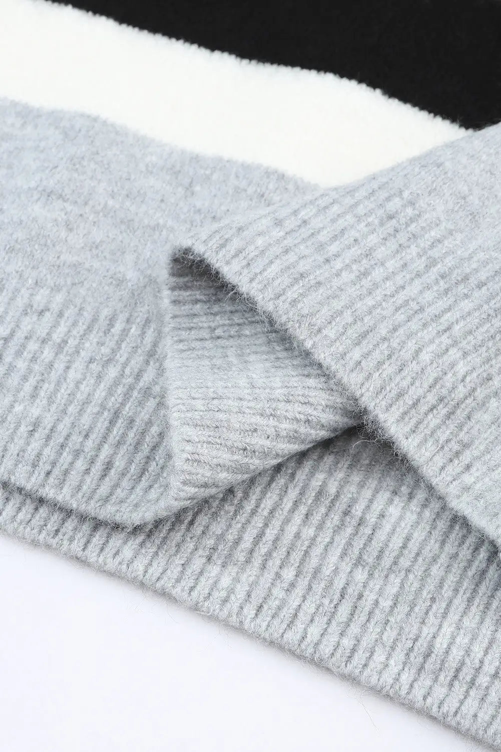 Brown Color Block Striped Ribbed Knit Sweater-5 Brown Color Block Striped Ribbed Knit Sweater-5