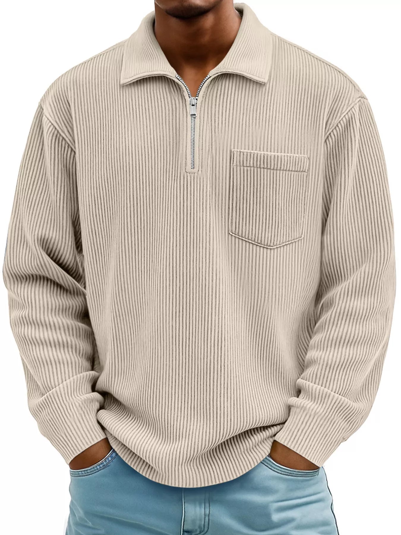 Men's Full Size Corduroy Half Zip Casual Top Plus Size