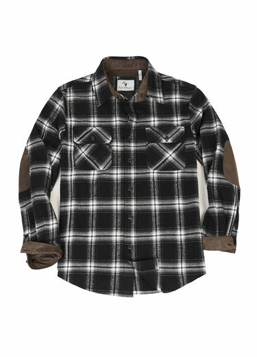 Elevate your wardrobe with our latest addition: the ultimate Men's Flannel Plaid Shirt. Designed for both work and outdoor adventures, its durable construction ensures long-lasting comfort and warmth. Featuring suede accents on the shoulders, cuffs, and elbows, this shirt exudes rugged elegance. Equipped with two chest pockets, one of which includes a pen slot, it combines functionality with timeless style. Upgrade your wardrobe with this versatile and durable essential.