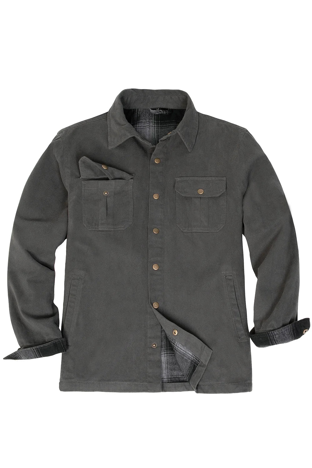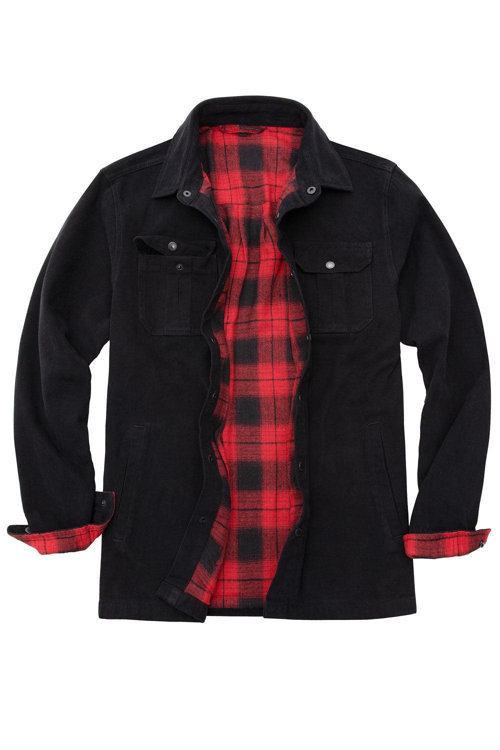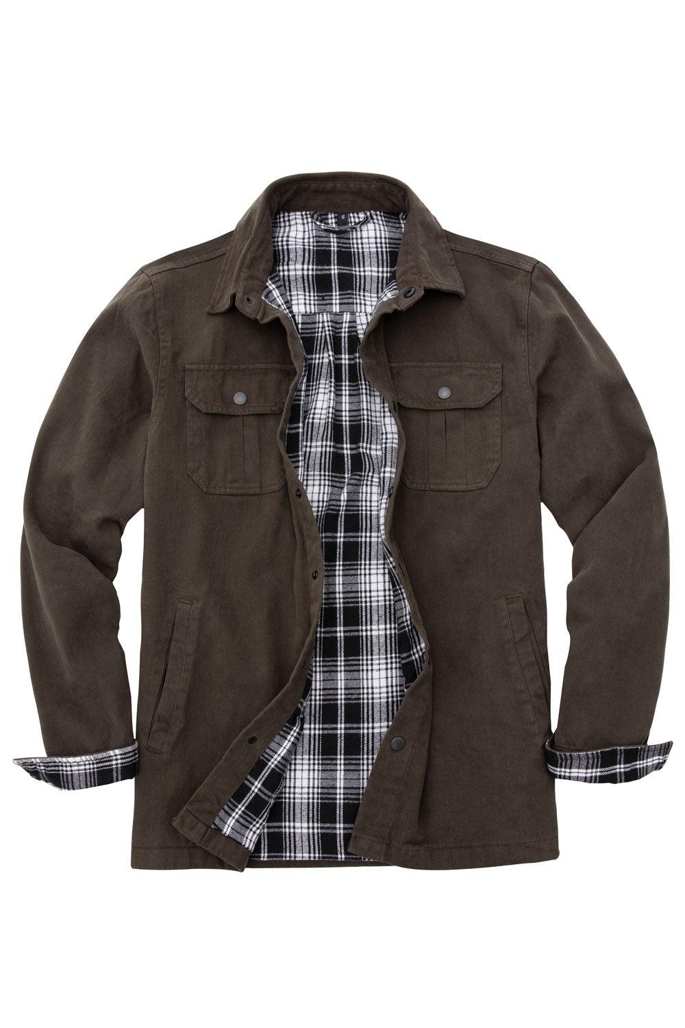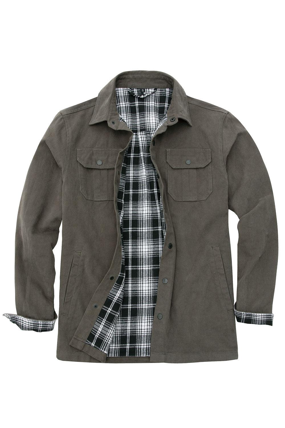 Men's Flannel Lined Heavy Washed Cotton Outdoor Utility Shirt Jacket