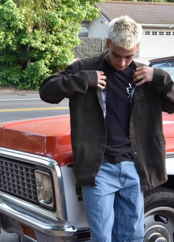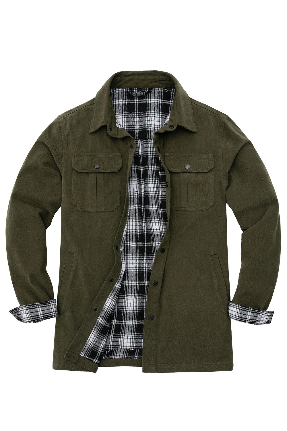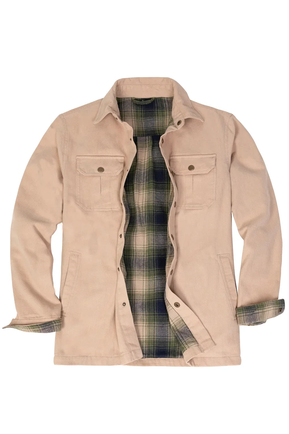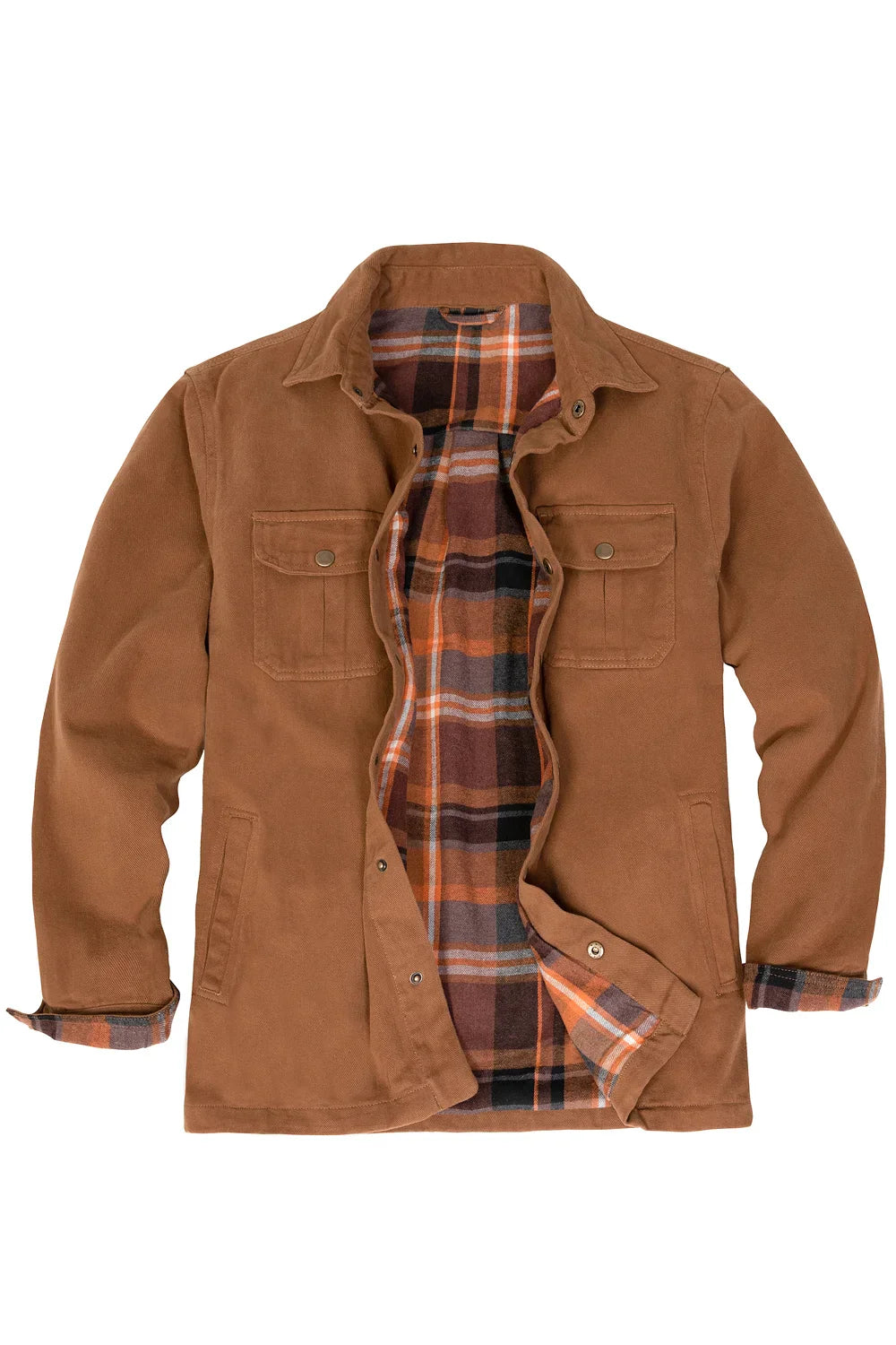 Men's Flannel Lined Heavy Washed Cotton Outdoor Utility Shirt Jacket
