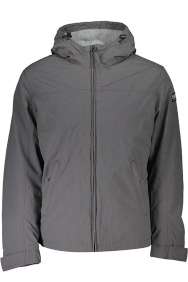 long-sleeved jacket with hood, 2 external pockets, 1 internal pocket, drawstring at the waist, zip, application, logo, 70% recycled materials