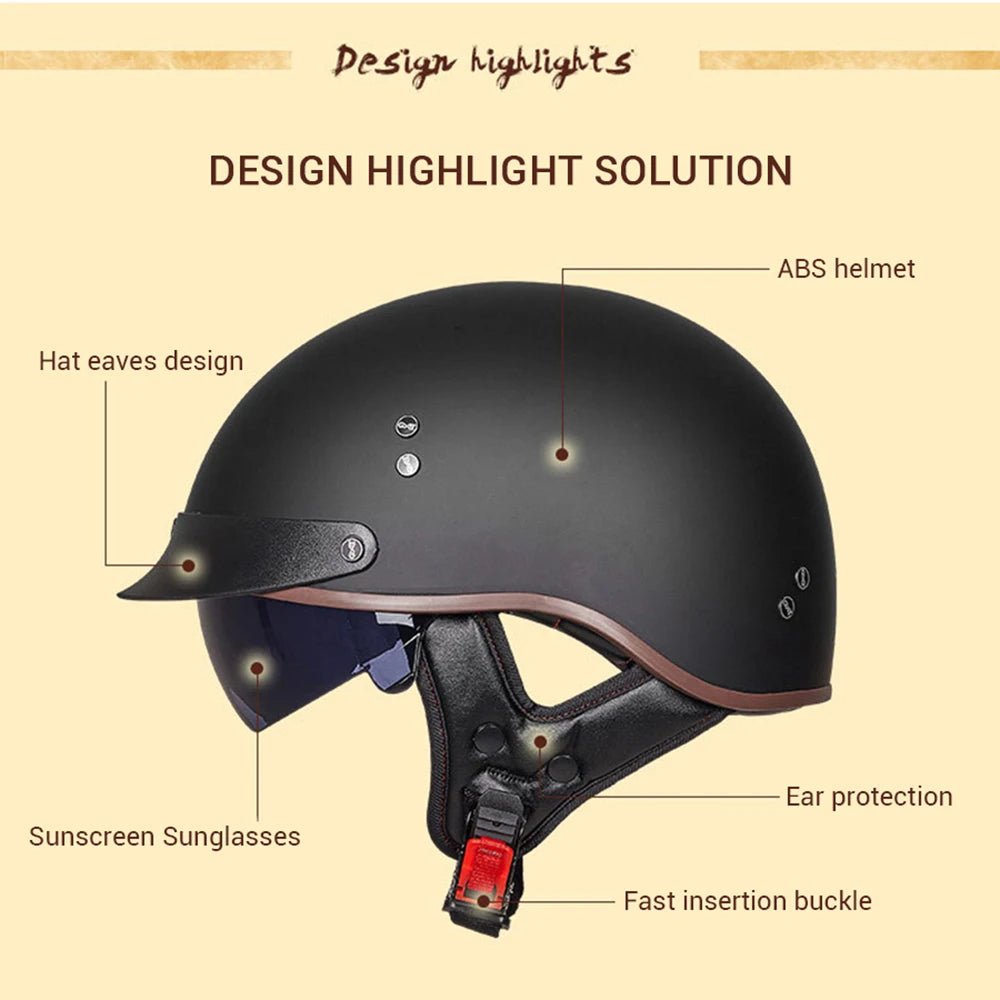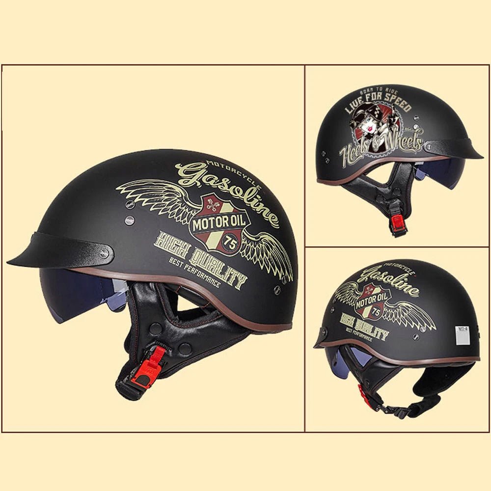 Ride in style and safety with our Open Face Retro Motorcycle Helmet! Made from durable carbonfiber, this helmet offers maximum protection without compromising on style. Whether you're hitting the open road or cruising the city streets, our helmet is the perfect choice for any motorcycle enthusiast.