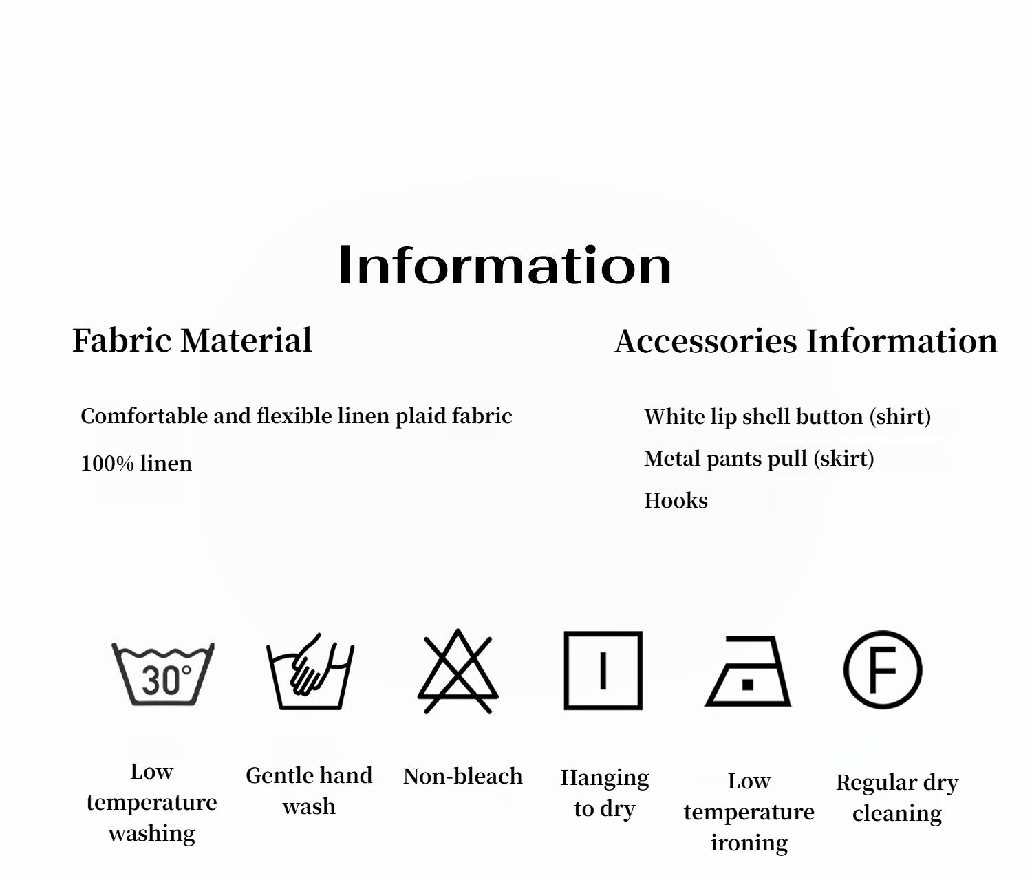 "Plaid Sketch" Vintage Linen Shirt Skirt Two-Piece Spring