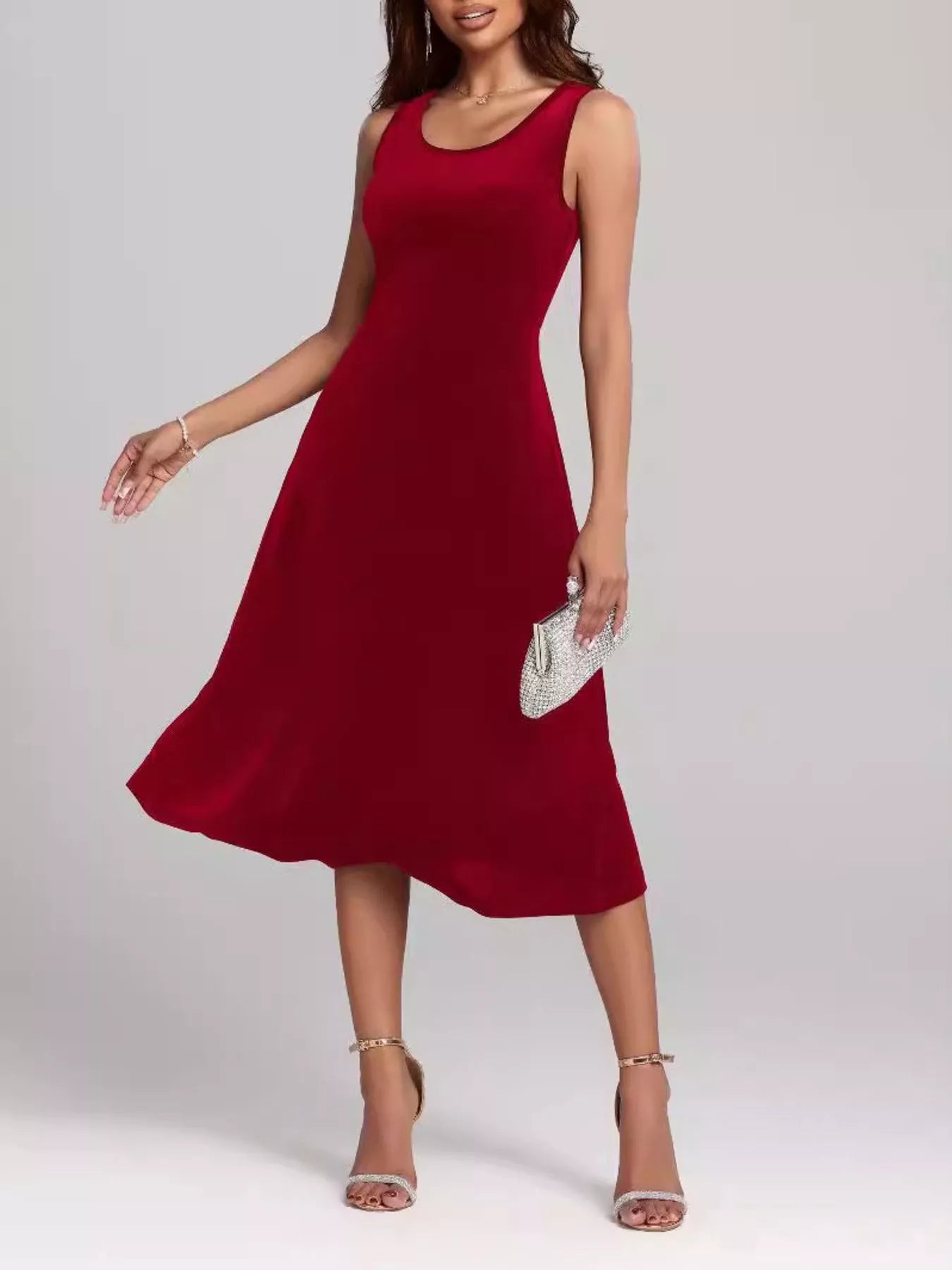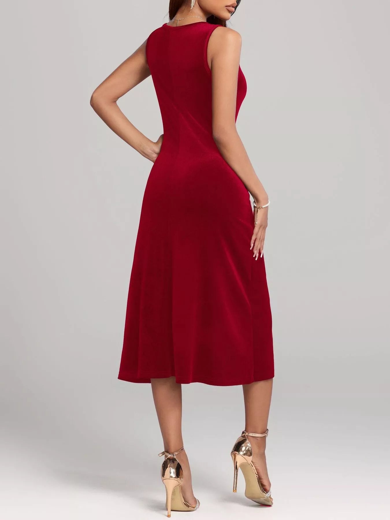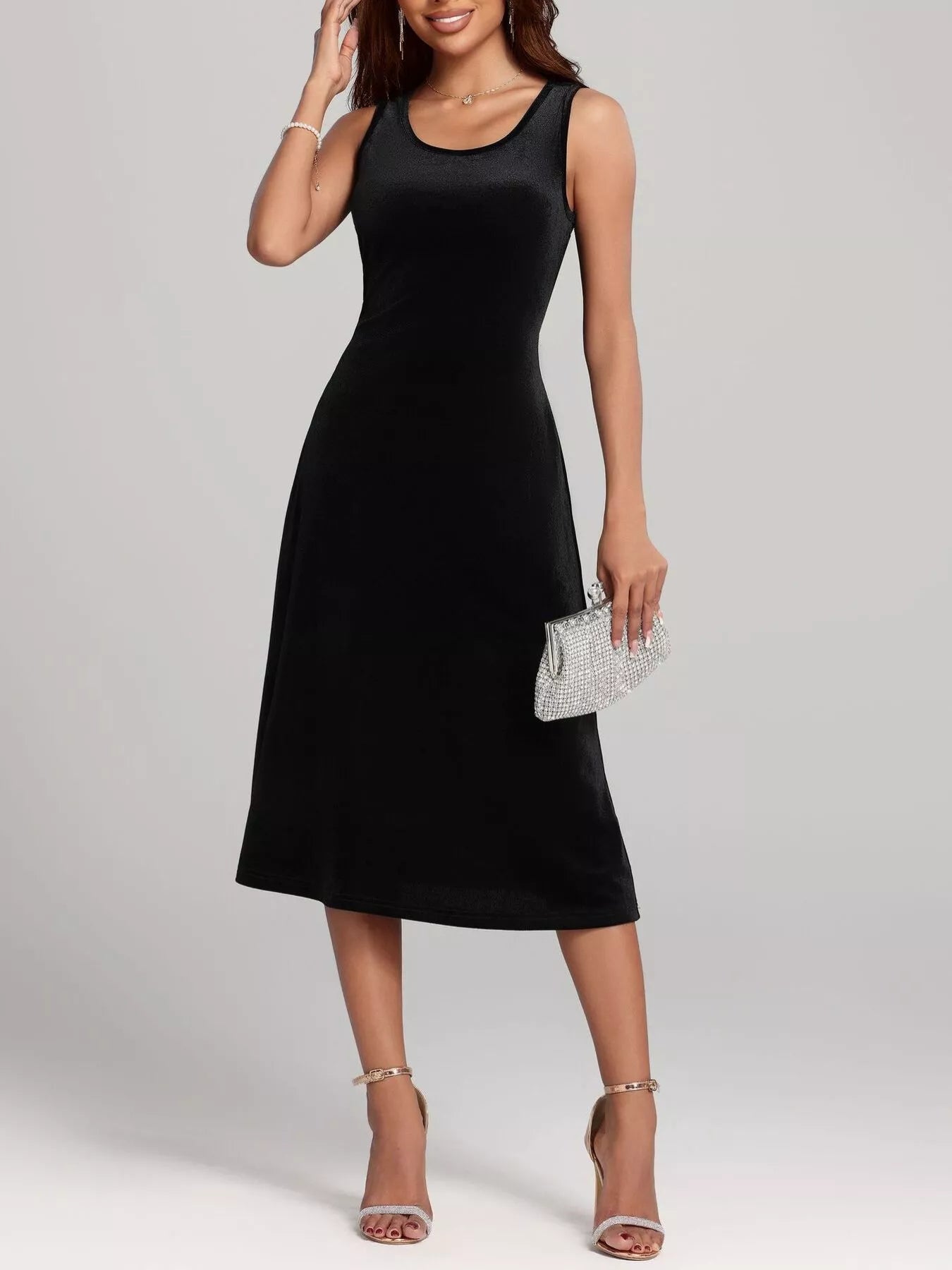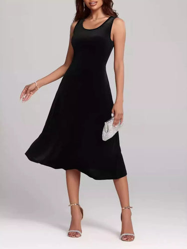 Round Neck Sleeveless Velvet A-Line Midi Dress