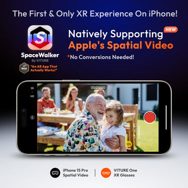 - 【The First To Support Apple's Spatial Video】Make the most of the iPhone 15 Pro's newest camera feature — start recording 3D videos now to relive your favorite memories and precious moments later in XR with VITURE's FREE SpaceWalker app (even without conversion)!