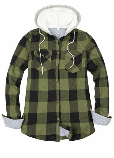 Women's Fleece Lined Flannel Shirt,Button Down Plaid Hooded Jacket