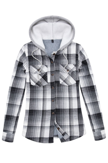 Women's Fleece Lined Flannel Shirt,Button Down Plaid Hooded Jacket